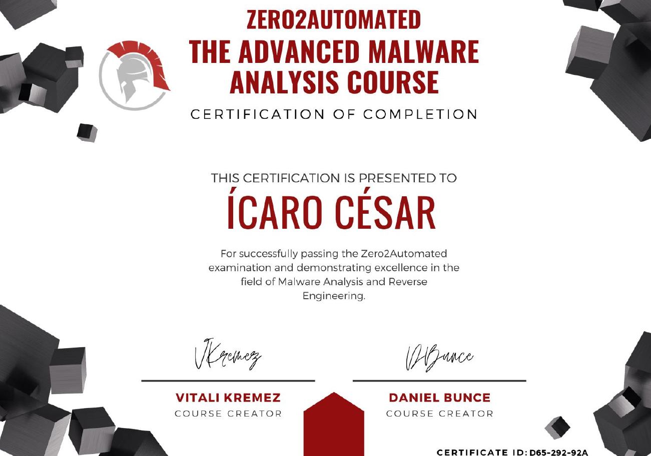 Passed CMAB certification improved malware analysis skills Raciel