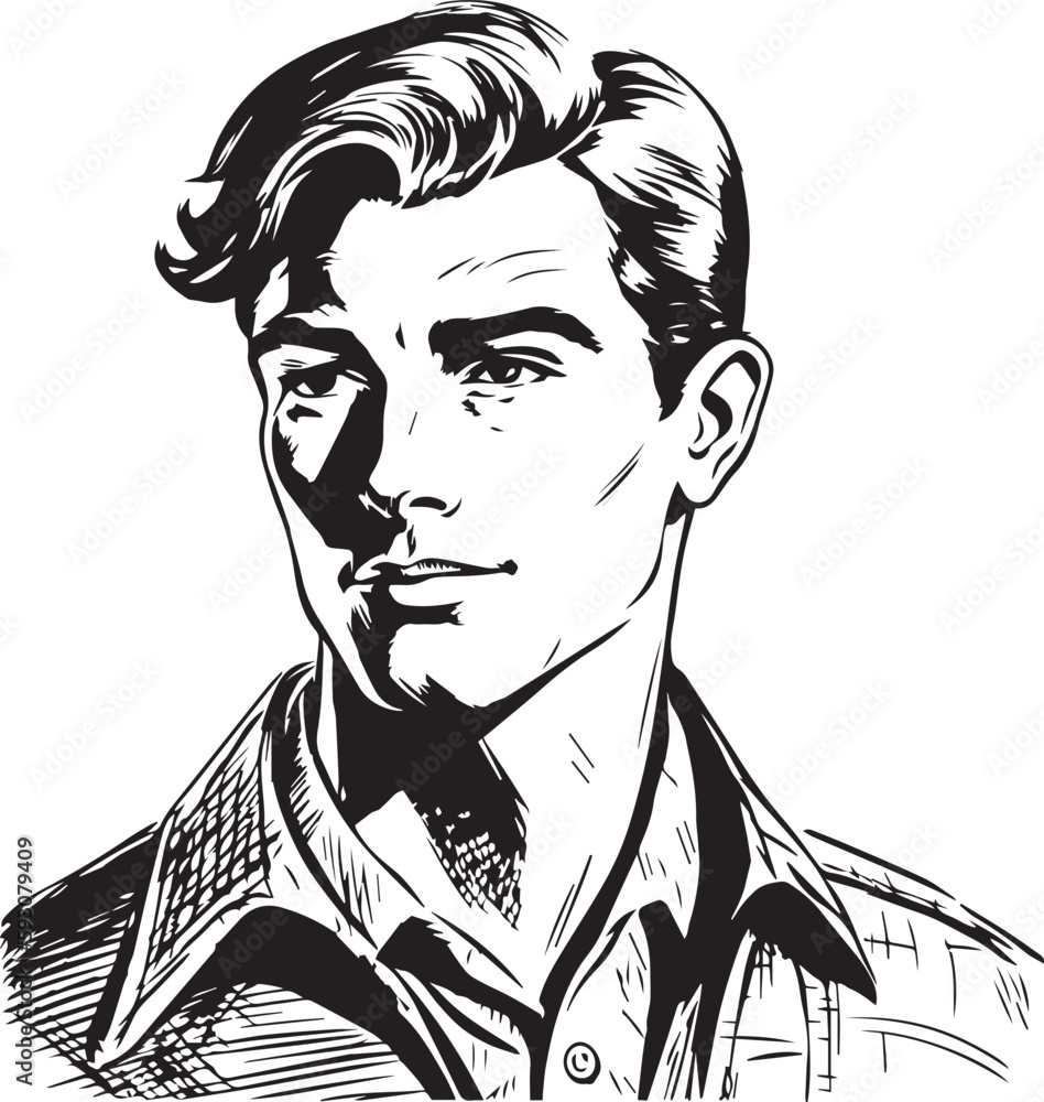 Vintage man 60s style young man Retro comics black and white ink