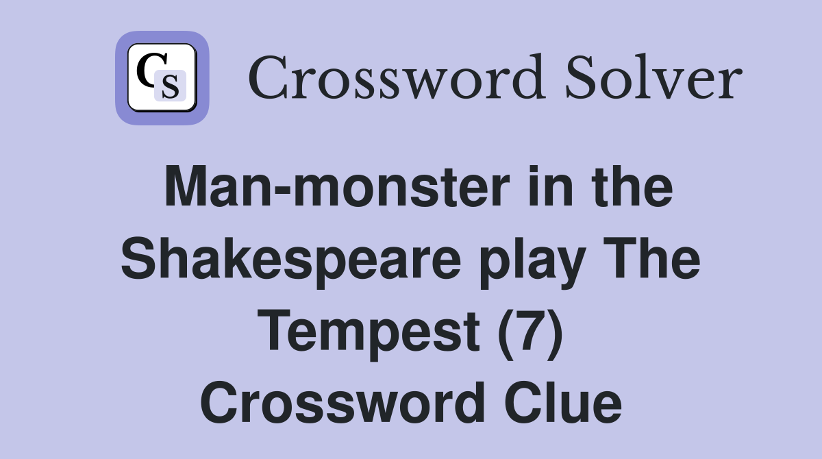 Man monster in the Shakespeare play The Tempest (7) Crossword Clue