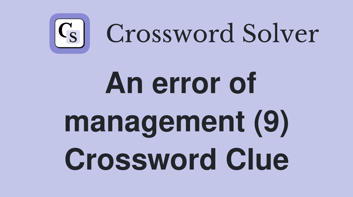 An error of management (9) Crossword Clue Answers Crossword Solver