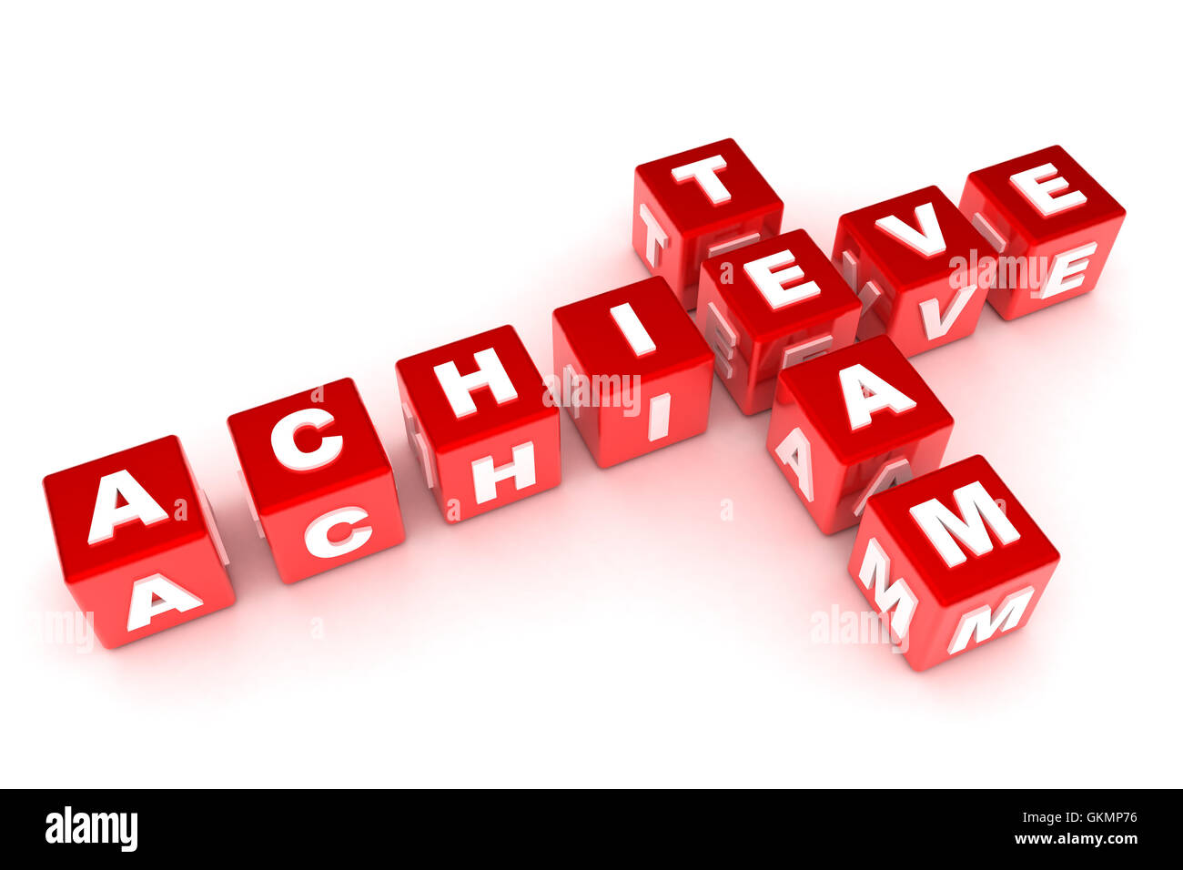 Achieve Elevate Sign as Crossword Cube Blocks on a white background 3d