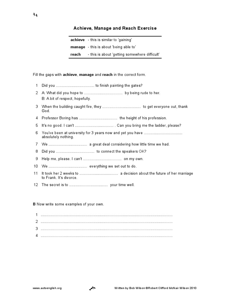 Achieve Manage and Reach Exercise: Achieve This Is Similar To