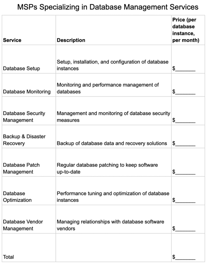 Managed Services Pricing Template
