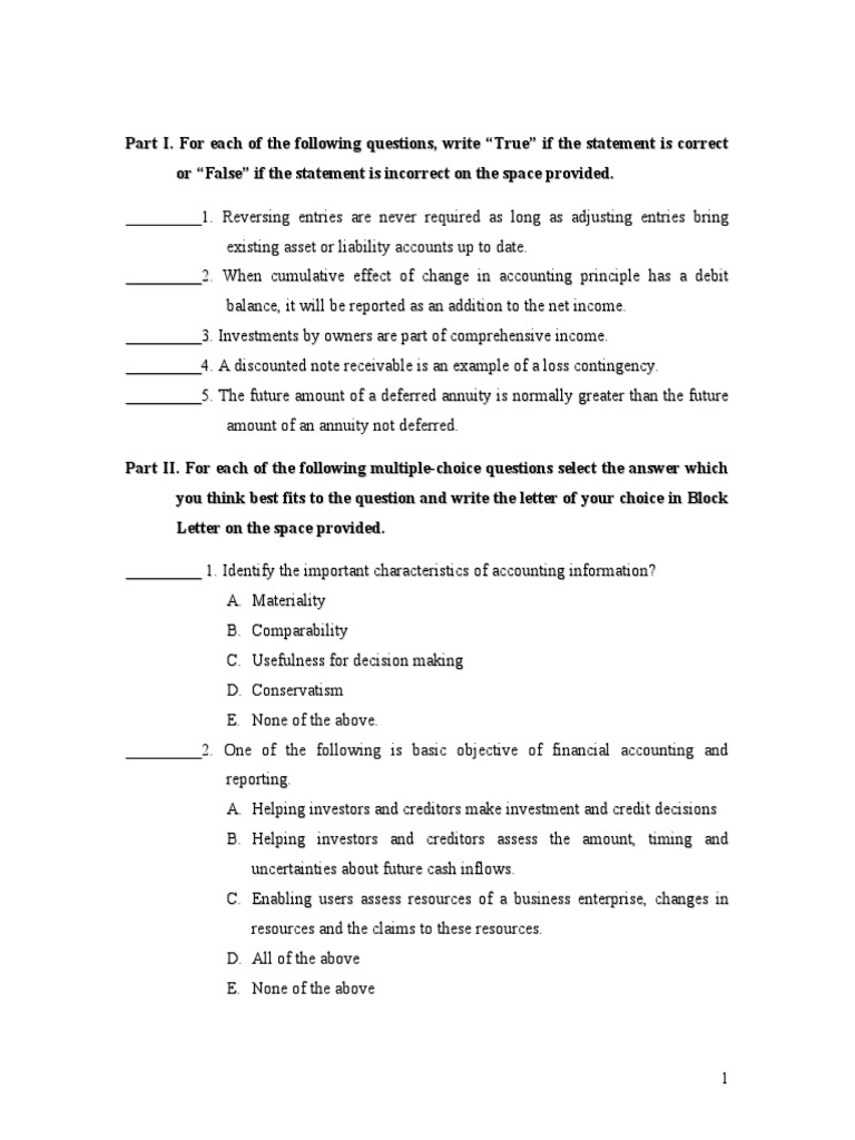 Worksheet For Financial Acc I PDF Debits And Credits Banks