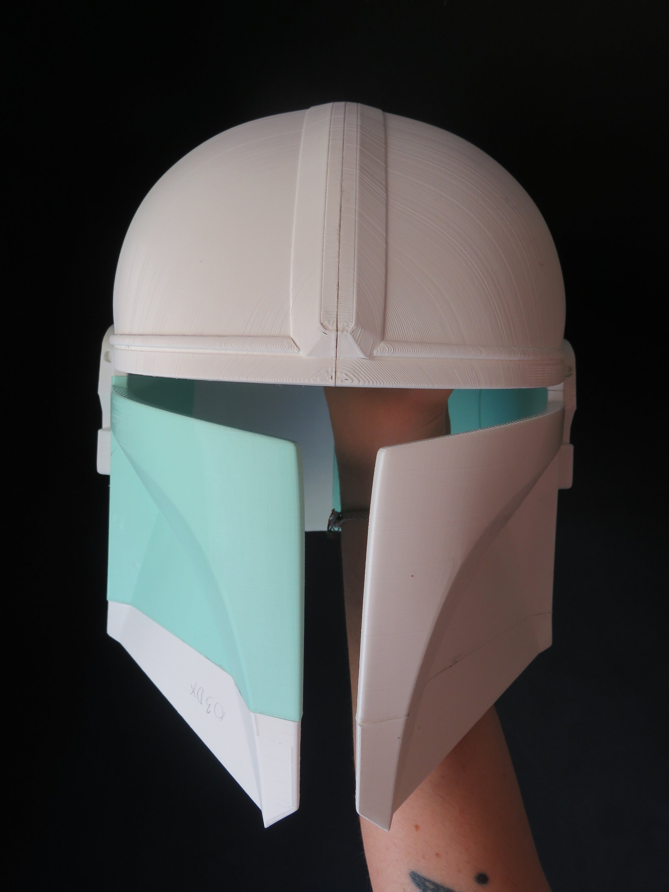 WIP on the Mandalorian Helmet Multi part test fitted for size Snow