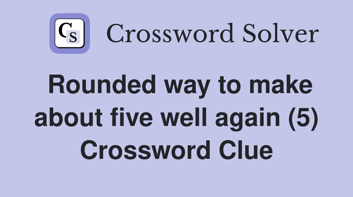 Rounded way to make about five well again (5) Crossword Clue Answers
