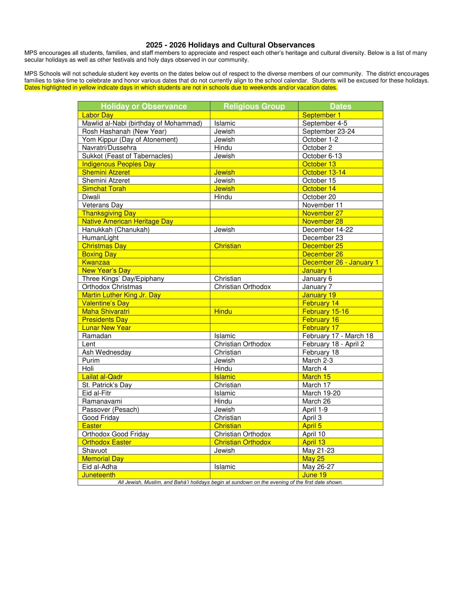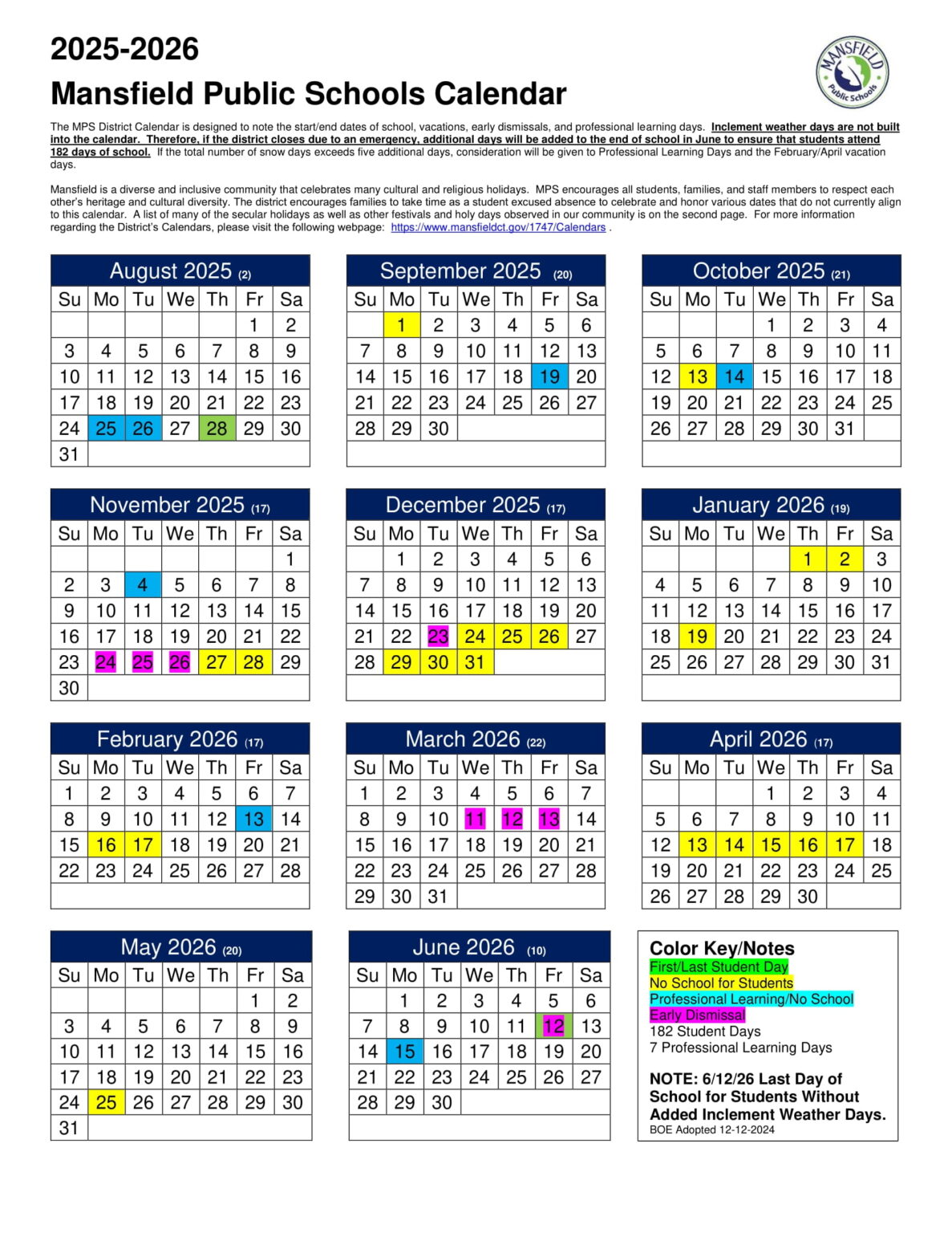Mansfield Public Schools Calendar