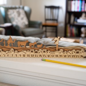 Nativity Advent Calendar Wooden Scene Christmas Countdown Mantle