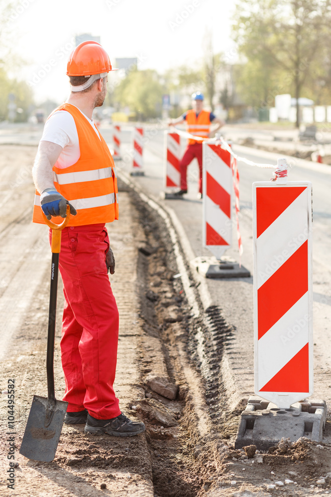 Manual worker with shovel Stock Photo Adobe Stock