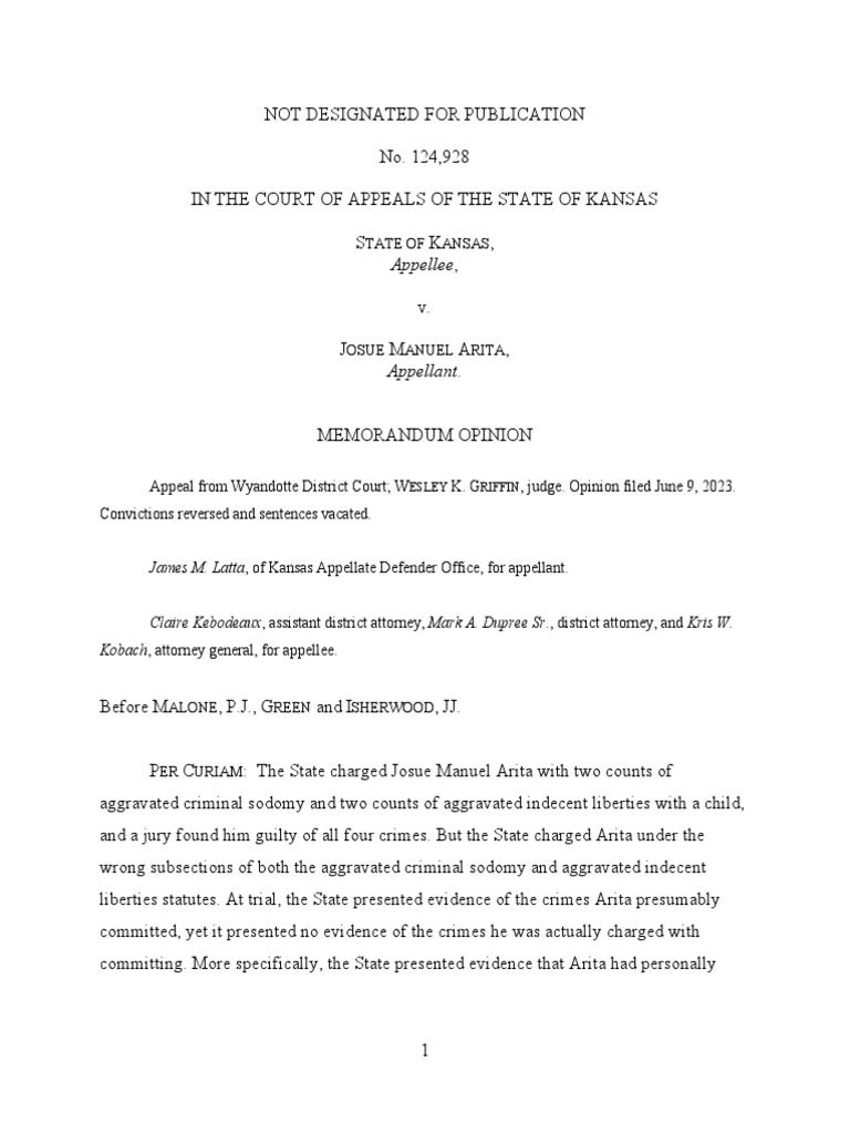 State of Kansas Vs Josue Manuel Arita PDF Burden Of Proof (Law