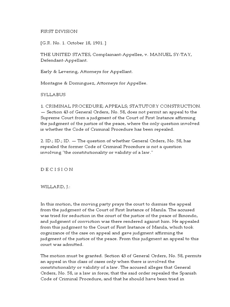 THE UNITED STATES Complainant Appellee v MANUEL SY TAY Defendant