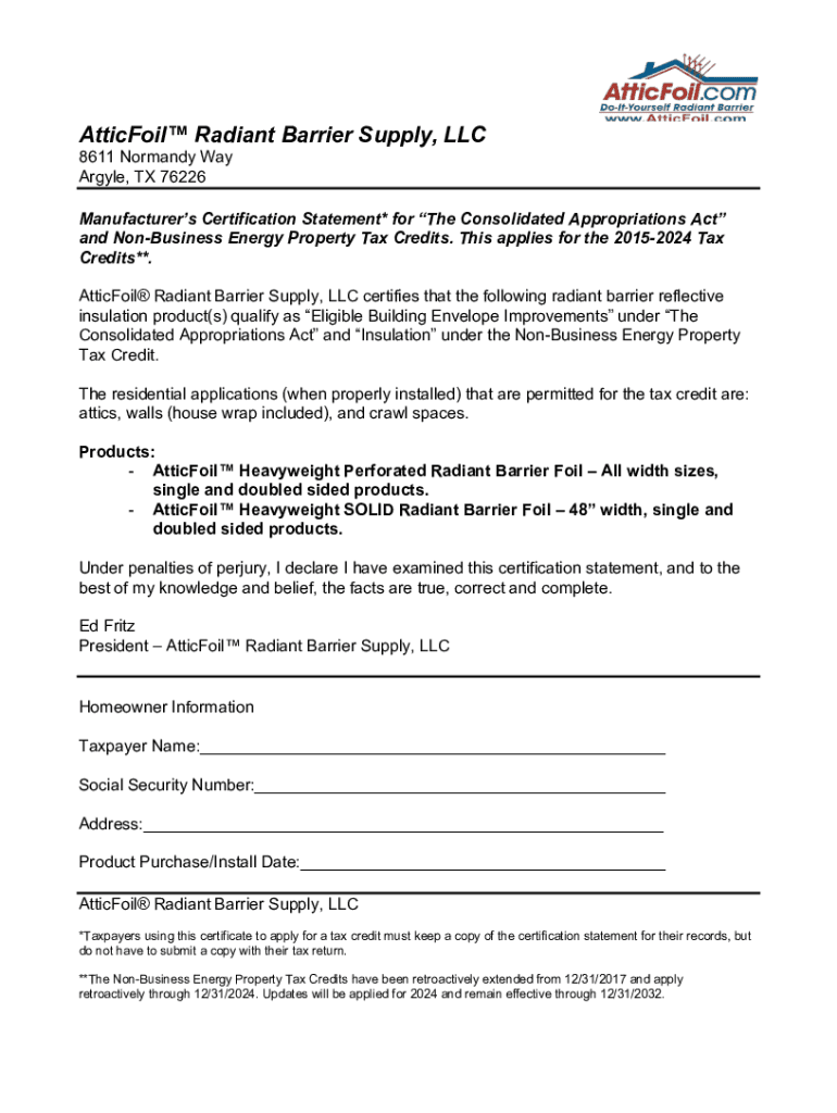 Manufacturer S Certification Statement Usainsulation Fill and Sign