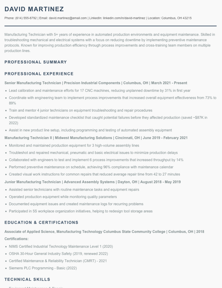 Manufacturing Technician Resume Examples Templates 2025 Resume AI