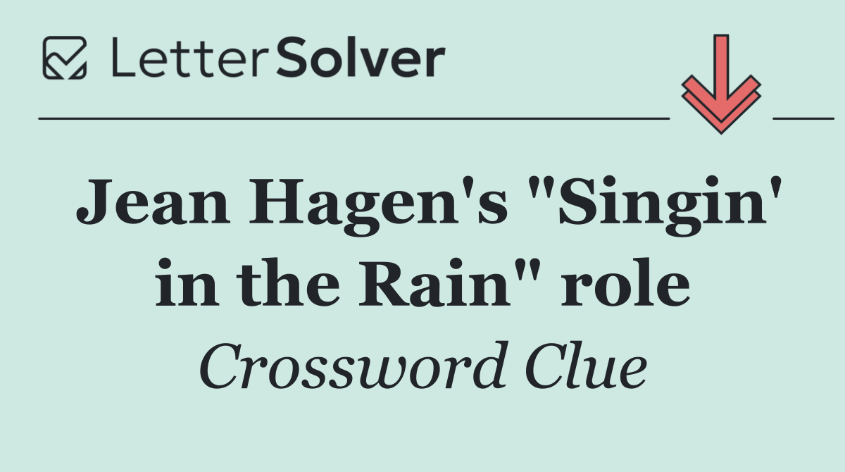Jean Hagen #39 s quot Singin #39 in the Rain quot role Crossword Clue Answers