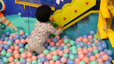 top view of child girl playing with many Stock Video Pond5