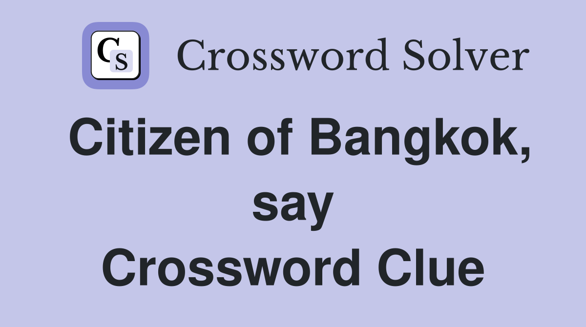 Citizen of Bangkok say Crossword Clue Answers Crossword Solver