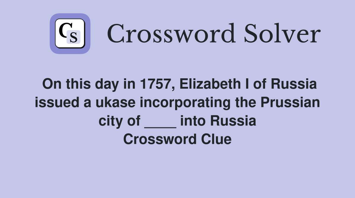 On this day in 1757 Elizabeth I of Russia issued a ukase incorporating