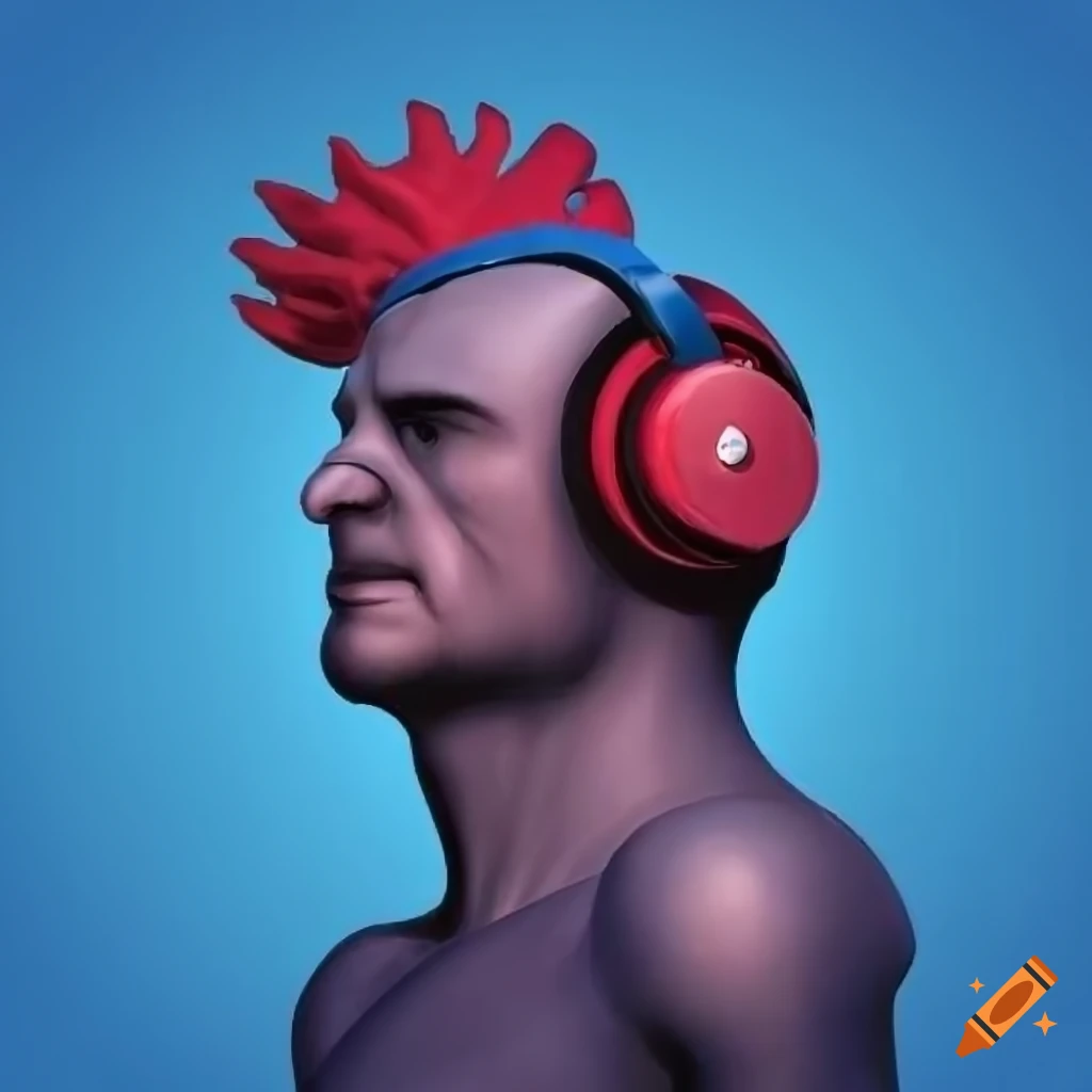 Abraxas rooster headed mythical creature with headphones on Craiyon