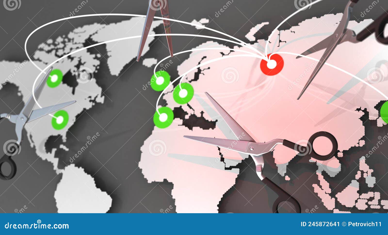 Scissors Cut Map World Template Dashed Line Continents Of Planet Earth