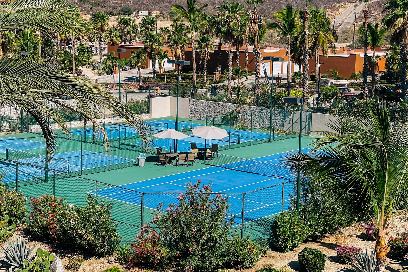 Premium Photo Aerial top view of tennis courts next to palm forest