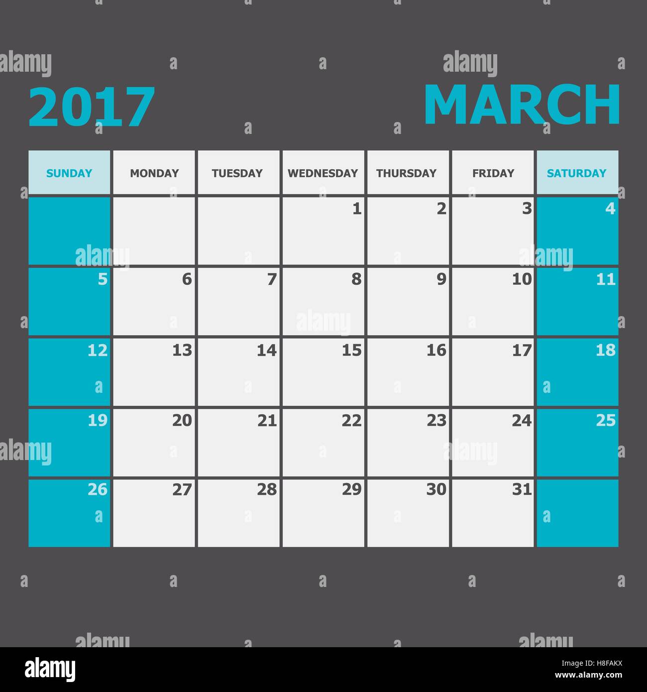 March 2017 Calendar vector illustration Stock Vector Image Art Alamy