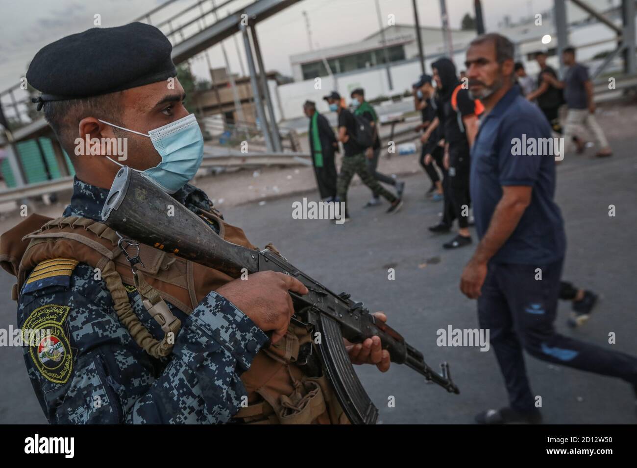 Karbala Iraq 05th Oct 2020 A member of the Iraqi security forces (R