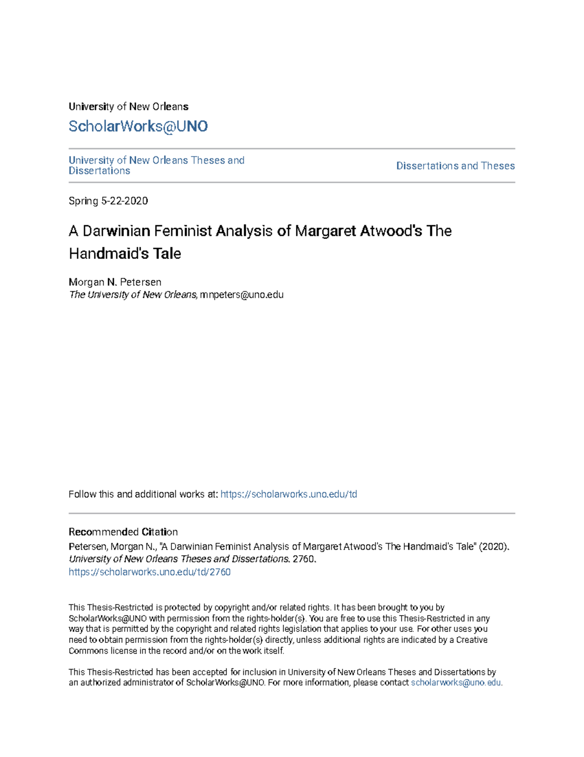 A Darwinian Feminist Analysis of Margaret Atwoods The Handmaids
