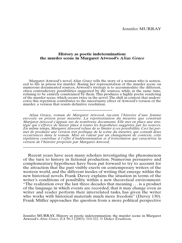 History As Poetic Indetermination The Murder Scene in Margaret Atwoods