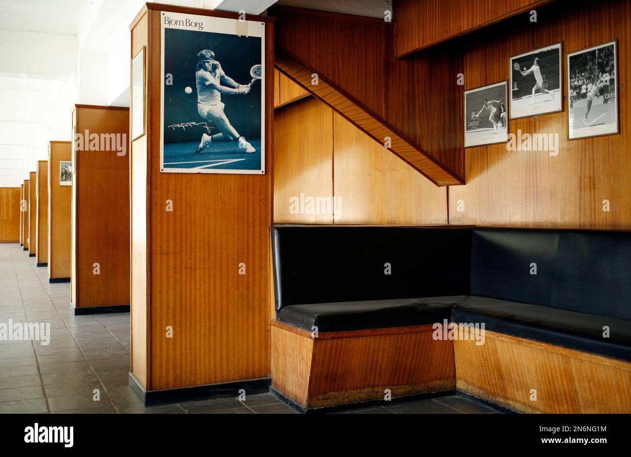 A poster of tennis player Bjorn Borg in the players pavilion at the