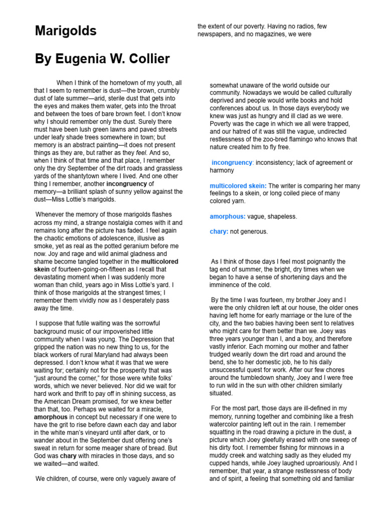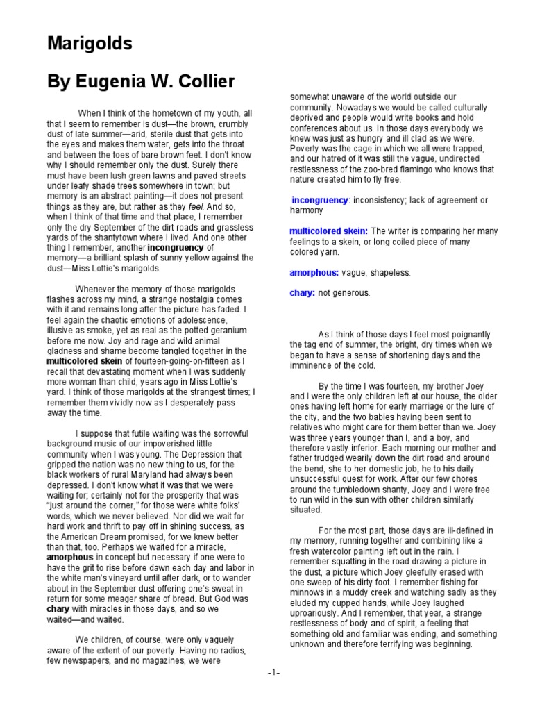 Here are some of the images for Marigolds By Eugenia Collier Worksheets that we found in our website database.