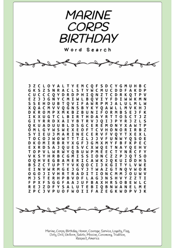 Marine Corps Birthday word search puzzle worksheet Activity Teaching