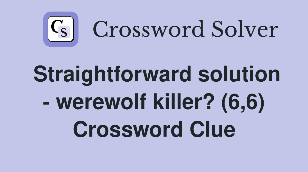 Straightforward solution werewolf killer? (6 6) Crossword Clue