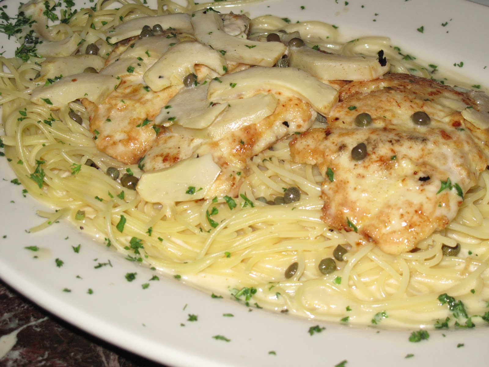 Chicken Picatta over angel hair pasta Restaurant dishes Dinner