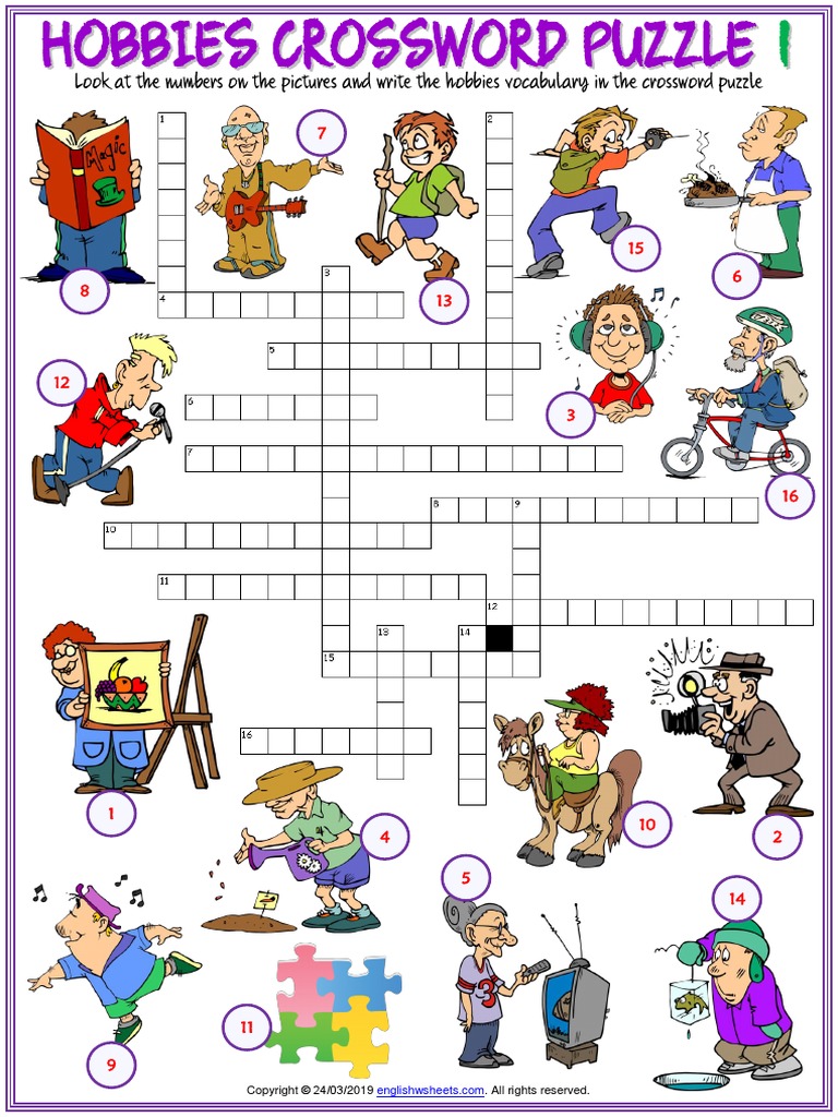hobbies vocabulary esl crossword puzzle worksheets for kids pdf
