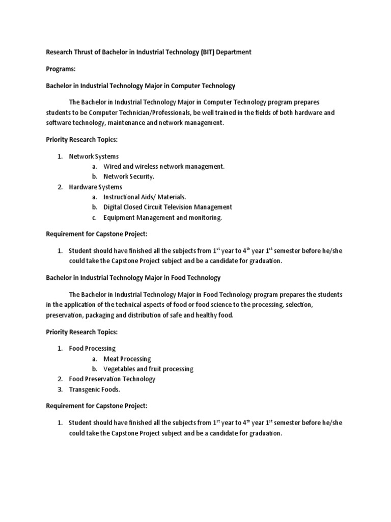 Research Thrust of Bachelor in Industrial Technology PDF