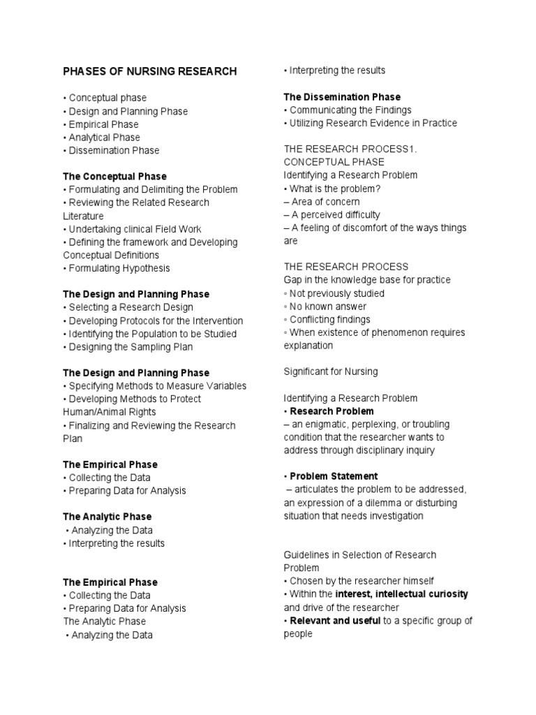 Phases of Nursing Research Reviewer PDF Theory Conceptual Model