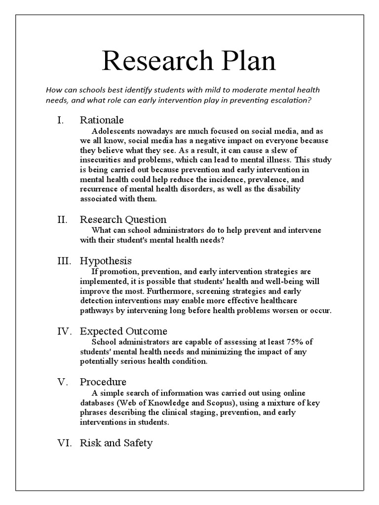 Research Plan: I Rationale PDF Mental Health Preventive Healthcare