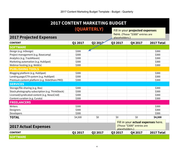 Content Marketing Budget Excel Template Download The Fox Click : Free