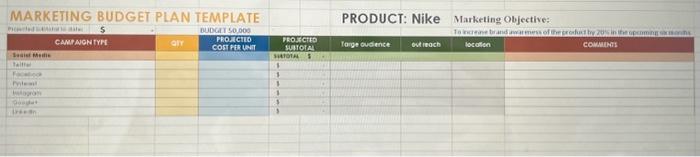 Fill every boxMARKETING BUDGET PLAN TEMPLATE Chegg com