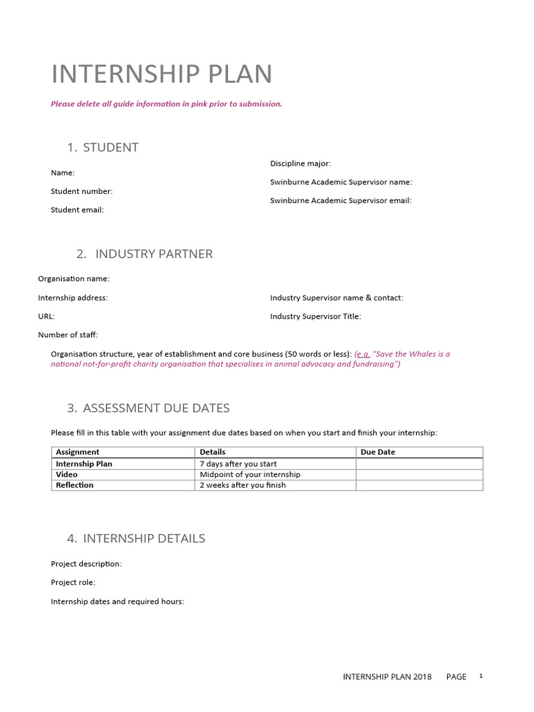Internship Work Plan Template Google Docs Word Apple Pages PDF
