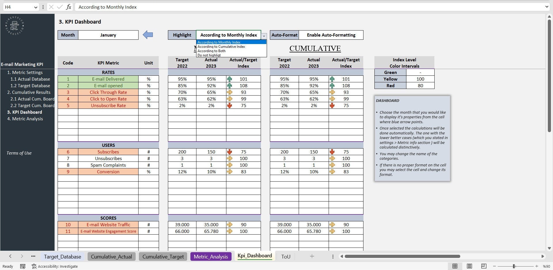 Email Marketing KPI Report Template KPI Metric Report KPI Dashbord