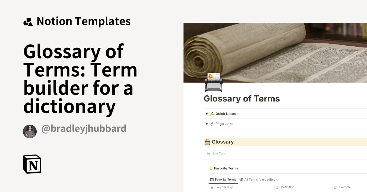 Glossary of Terms: Term builder for a dictionary Template by Bradley J
