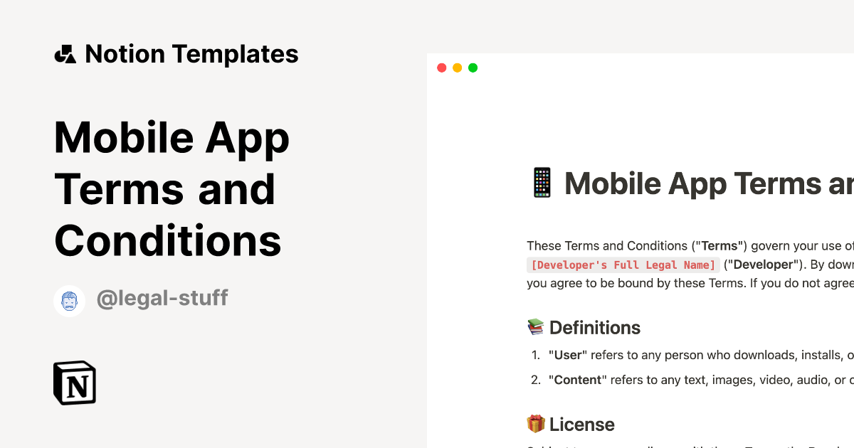 Mobile App Terms and Conditions Template Notion Marketplace