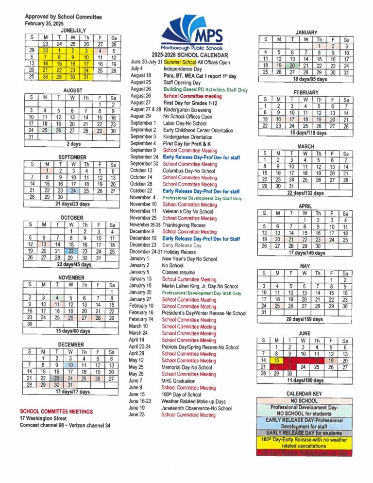 Marlborough Public Schools ma Calendar 25 26 Revised PDF EduCounty