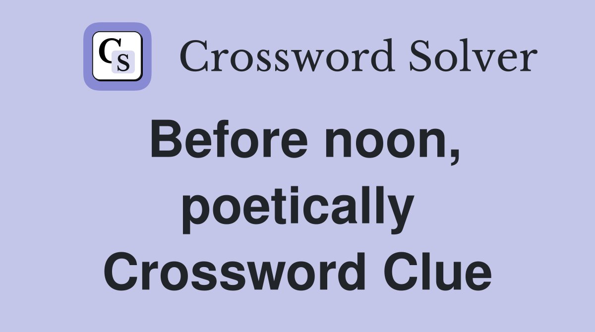 Before noon poetically Crossword Clue Answers Crossword Solver