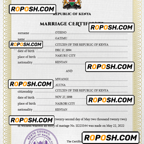 Kenya marriage certificate PSD template completely editable Oxtempl