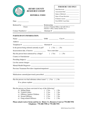 Fillable Online co henry ga Referral Form Henry County co henry ga