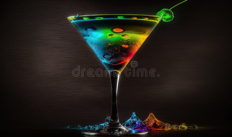 A Colorful Martini with a Green Garnish on the Rim Stock Illustration