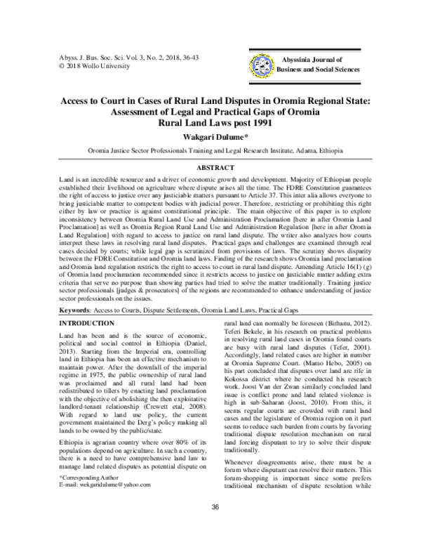 (PDF) Access to Court in Cases of Rural Land Disputes in Oromia
