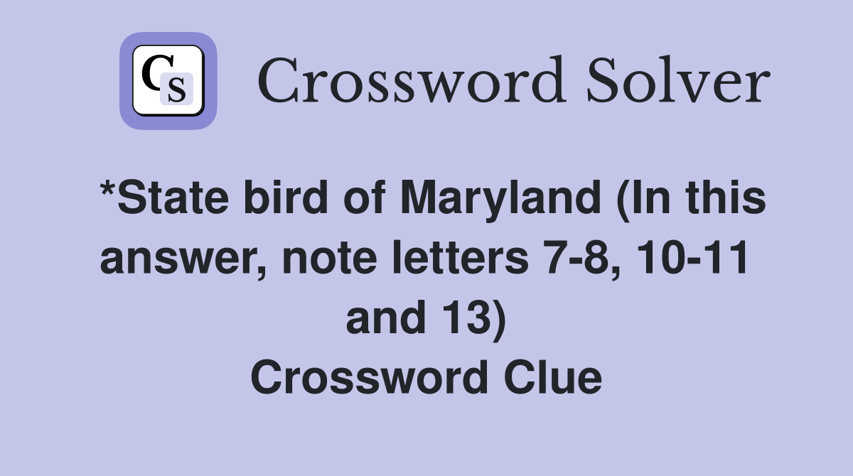 Here are some of the images for Maryland State Bird Crossword that we found in our website database.